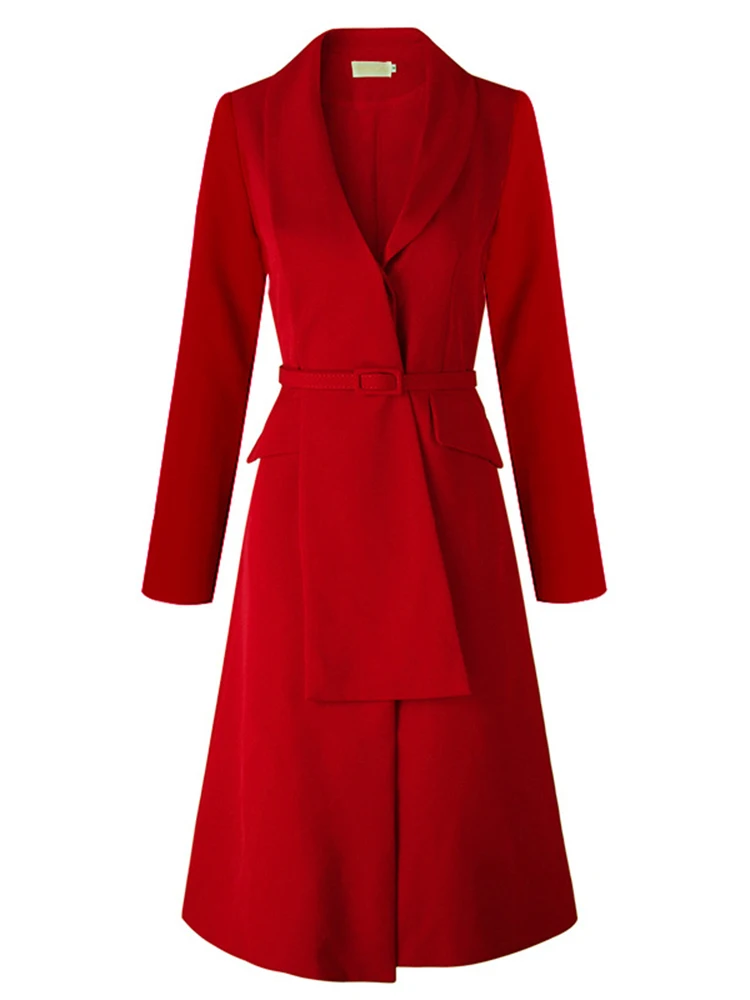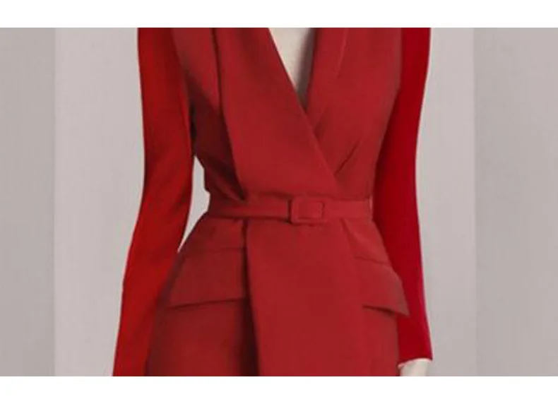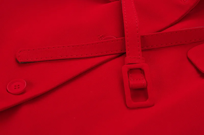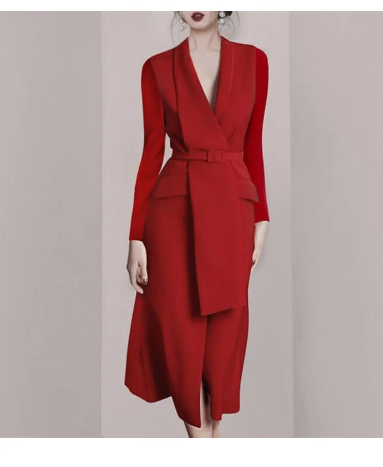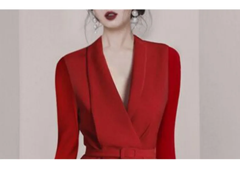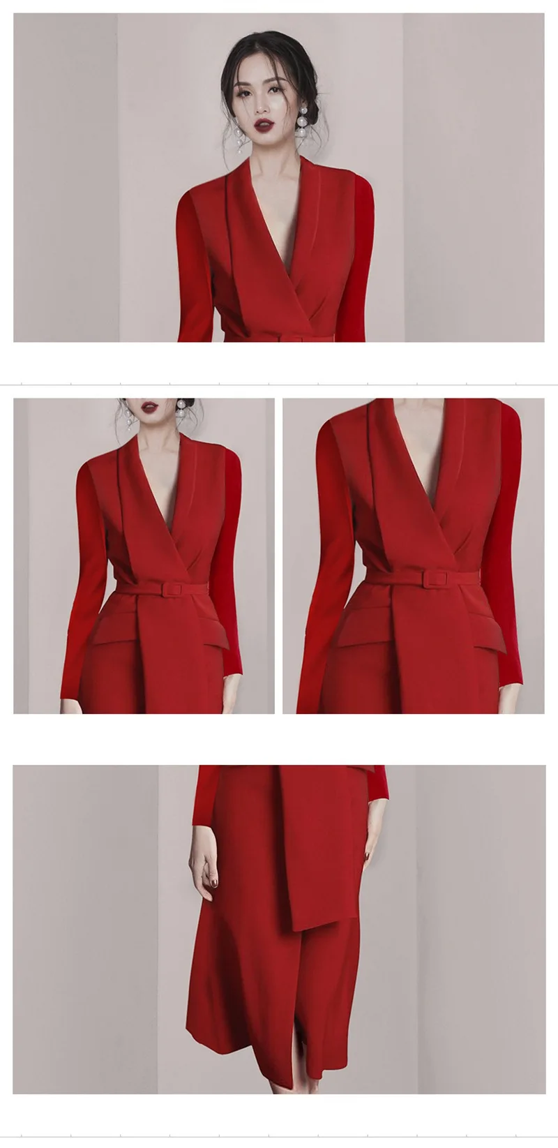 Red Women's Dress Temperament Office Lady Lapel Long Sleeve Belt Waist Cinched OL Dresses For Female 2025 Spring New 3C3169