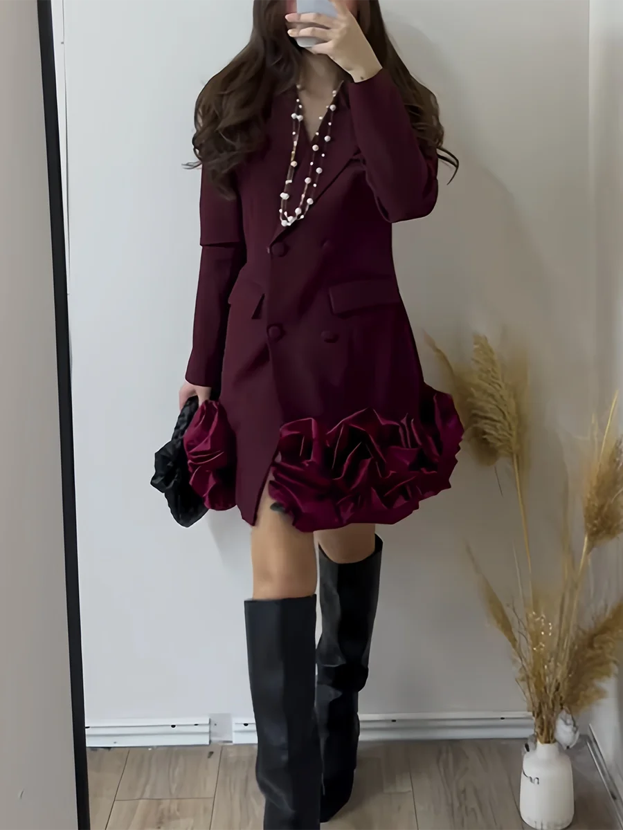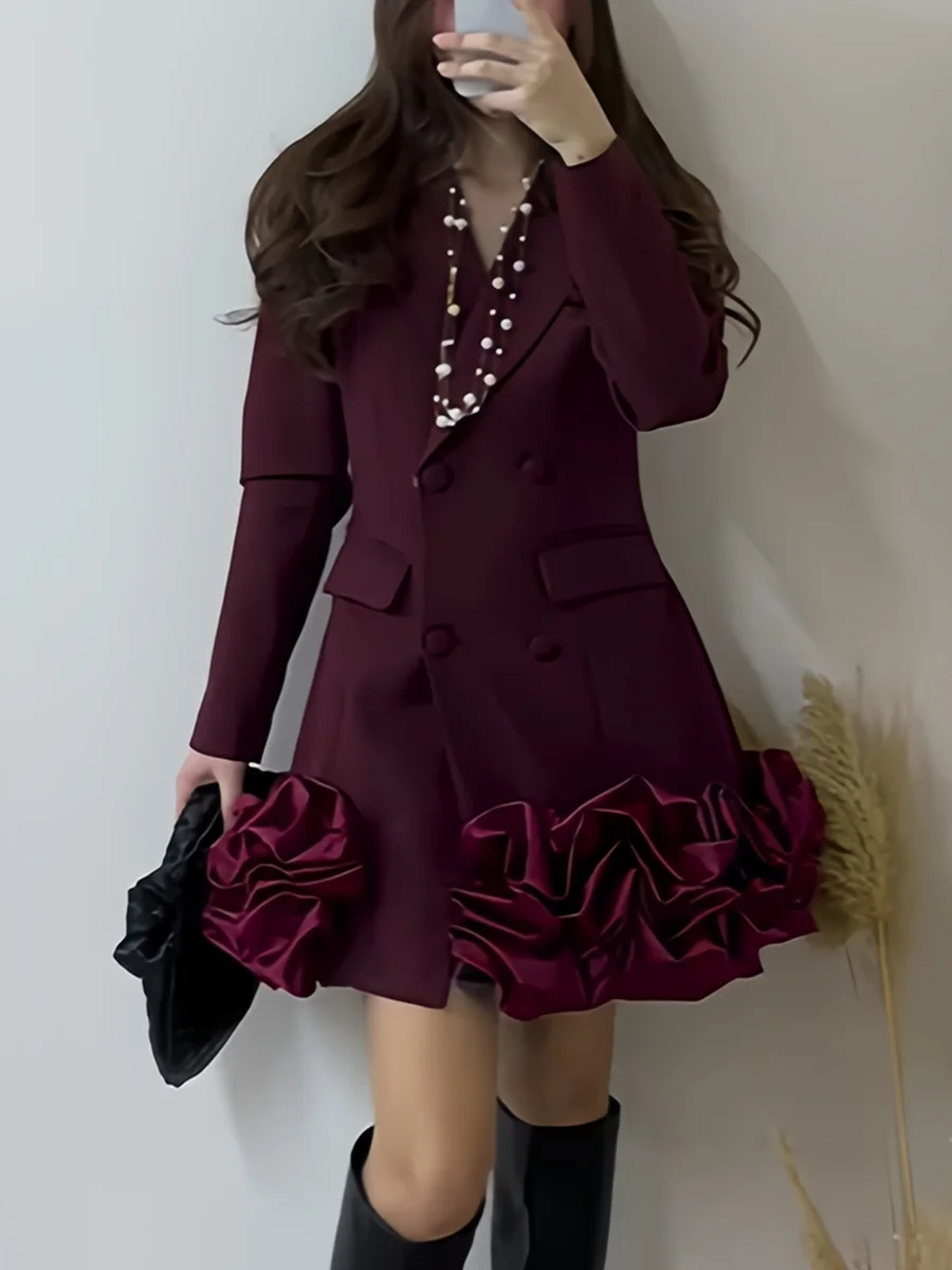 Women O Neck Long Sleeve High Waist Temperament Elegant Mini Dress