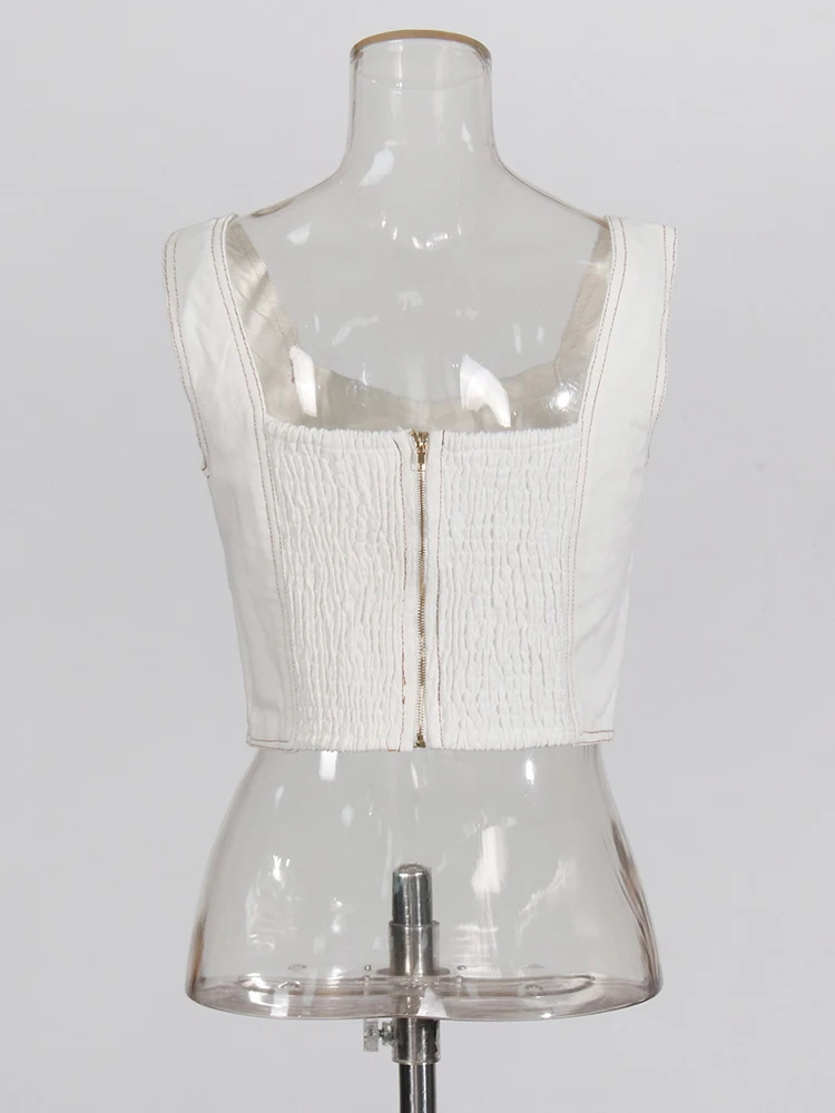 Women Square Collar Sleeveless Top High Waist Skirt and Solid Spliced Button Two Piece Set