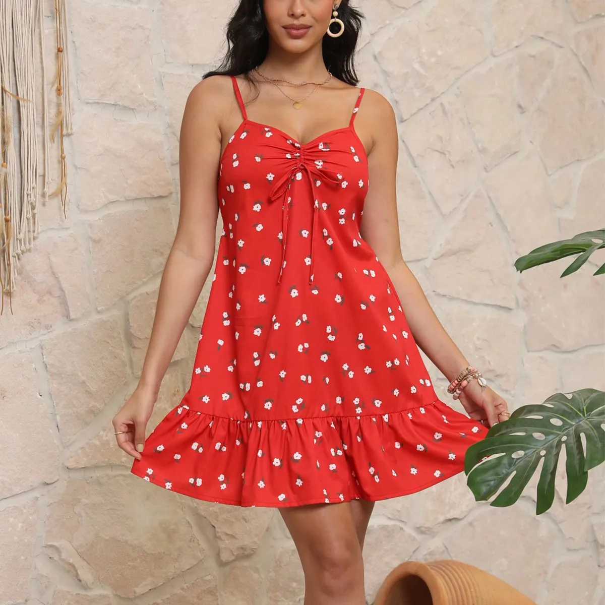 Women Summer Bohemian Spaghetti Strap Dress Sleeveless Floral Print Vestidos Midi Dress A-Line Casual Backless Sundress
