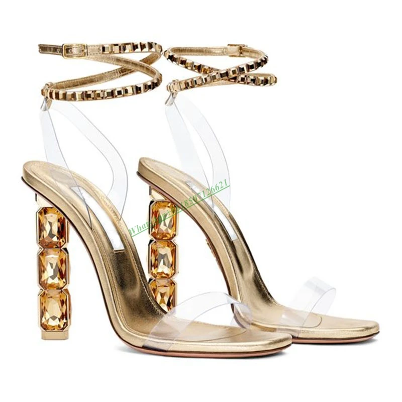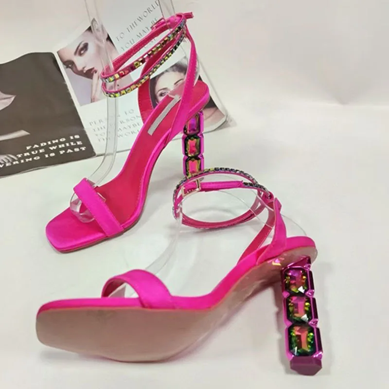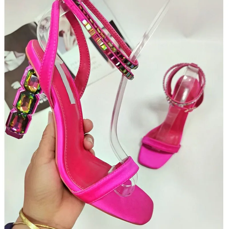 Women's Crystal Heel Square Toe Fashion Sandal Woman Plus Size Party Wedding Shoes