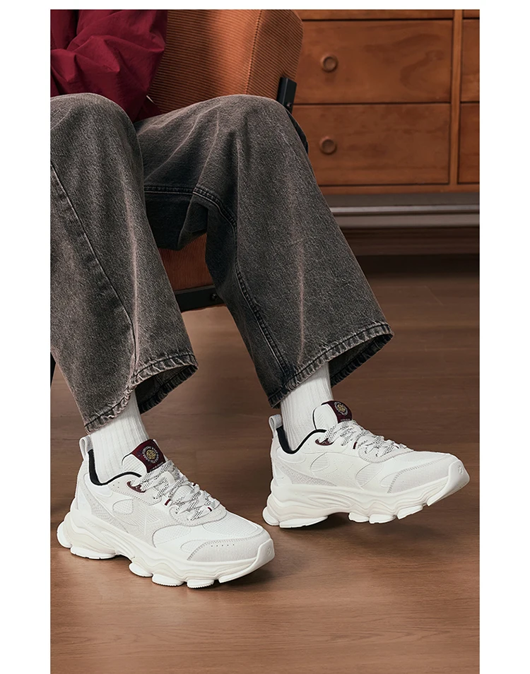 Xtep Chinoiserie Casual Shoes For Men 2025 Spring Thick Sole Sports Shoes Vintage Trendy Wear-Resistant Sneakers 875119320001