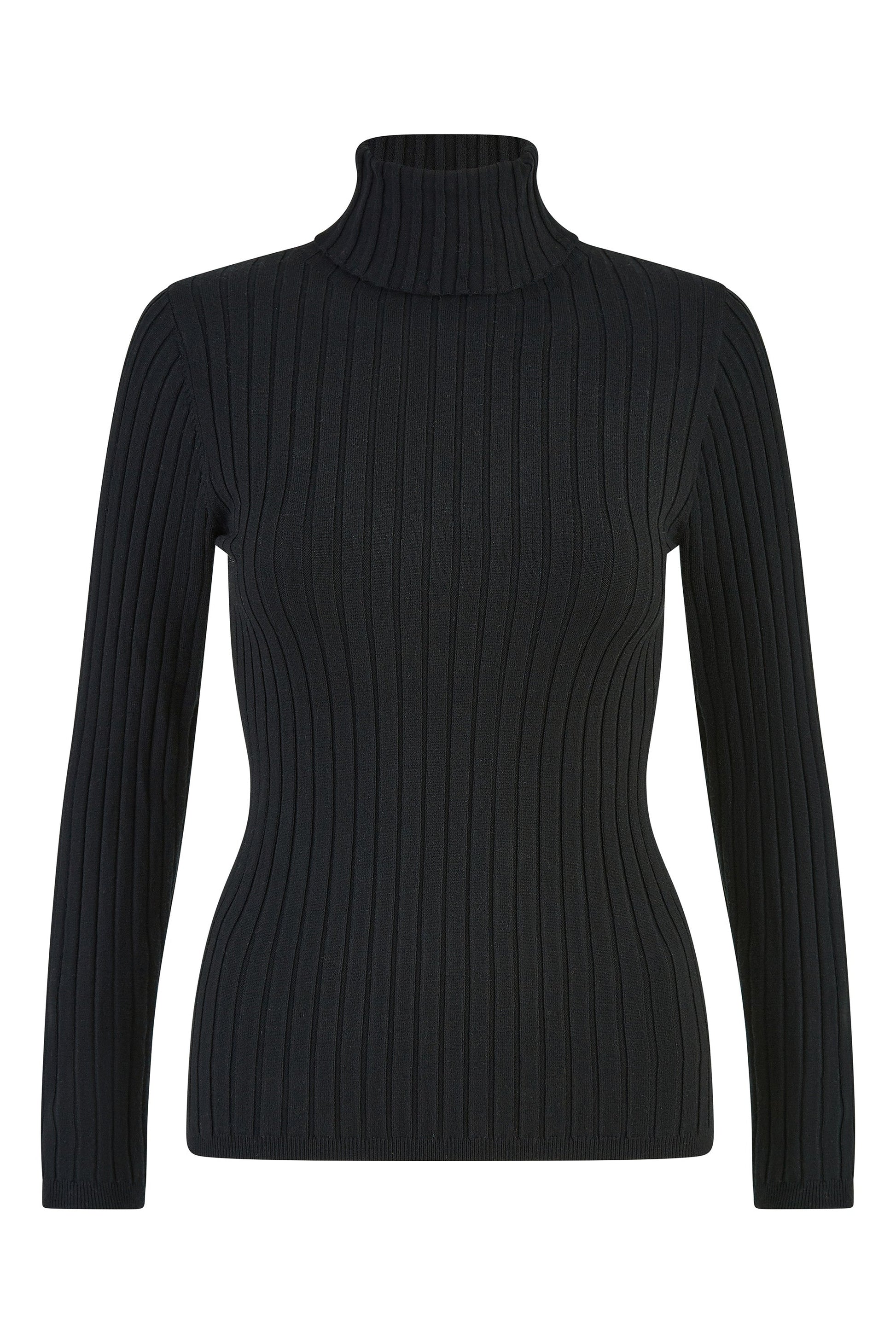 Yumi Black Ribbed Knit Roll Neck Jumper