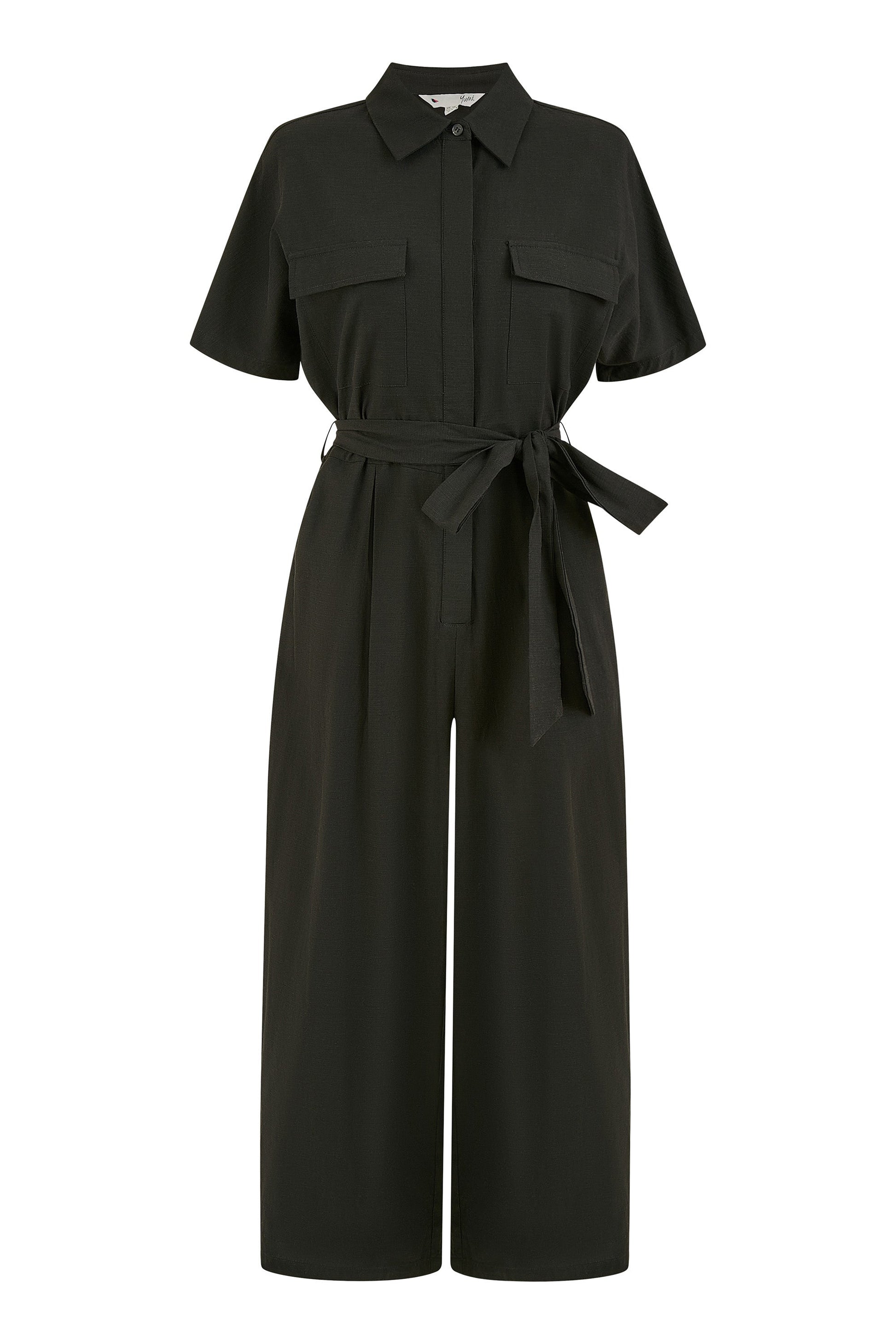 This practically perfect fit from Yumi will have you sorted for any situation. Work or weekend this utility style jumpsuit has a lot going for it. A sleek yet relaxed design, with a tie at the waist, tailored sleeves, button down fastening and pockets on the front. Wear with trainers for a cool fit