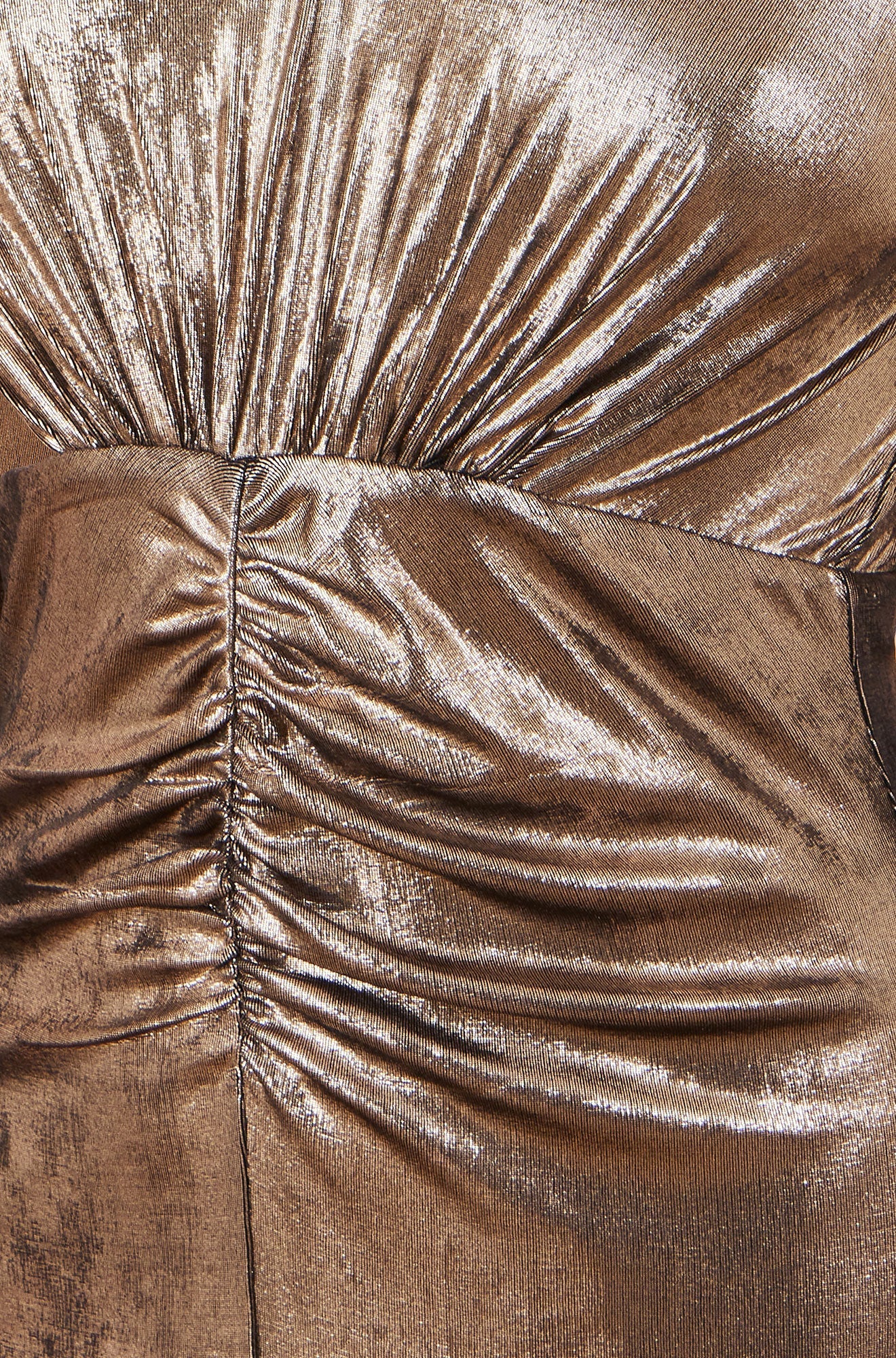 Yumi Gold Metallic Stretch Ruched Maxi Dress With Long Sleeves And Split Hemline
