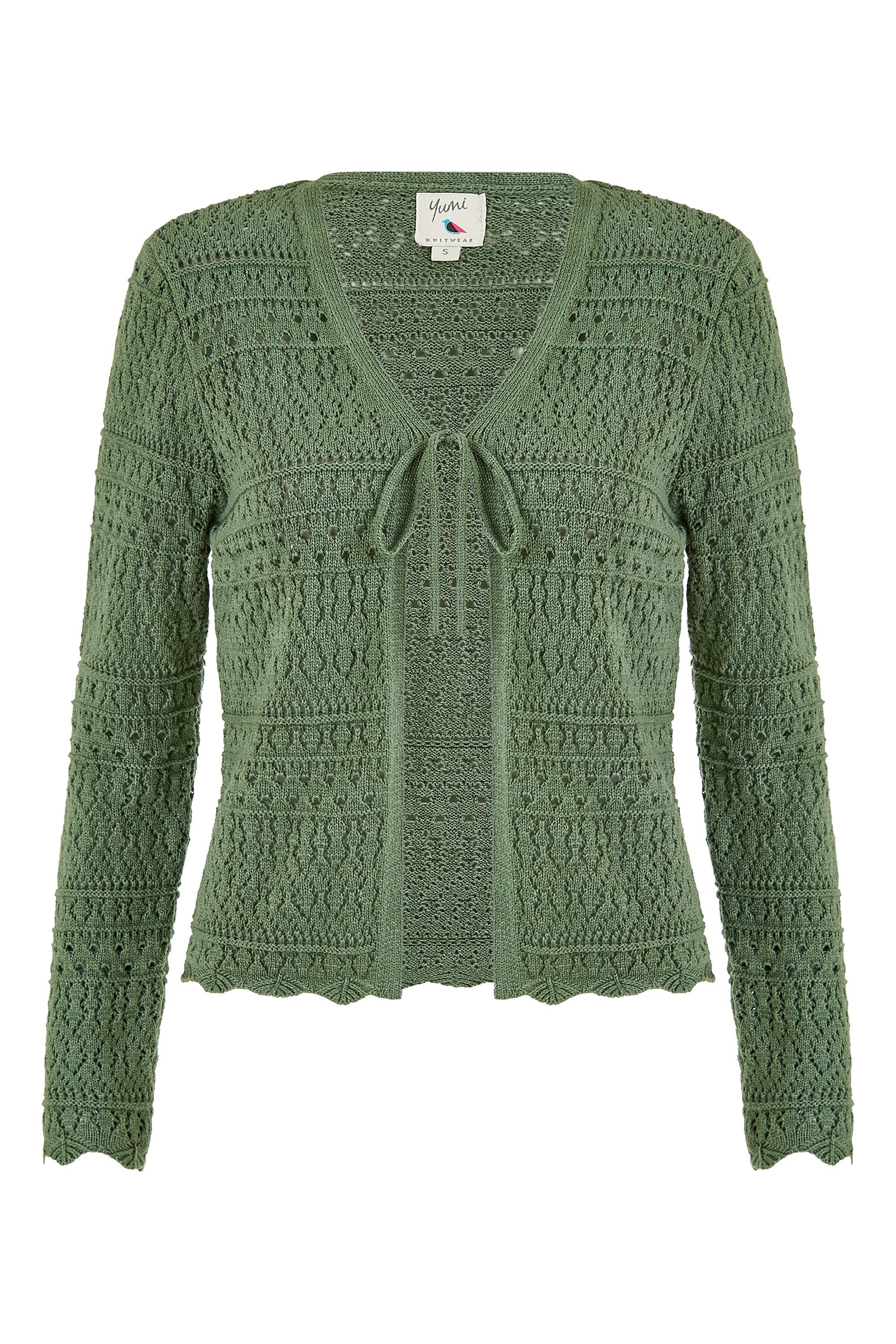 In a super cute and bang on trend crochet knit, this little cardigan will see you through the spring. With a tie front fastening, long sleeves and a hip length fit - It's a super versatile little number that can be worn with anything to keep the chill off.