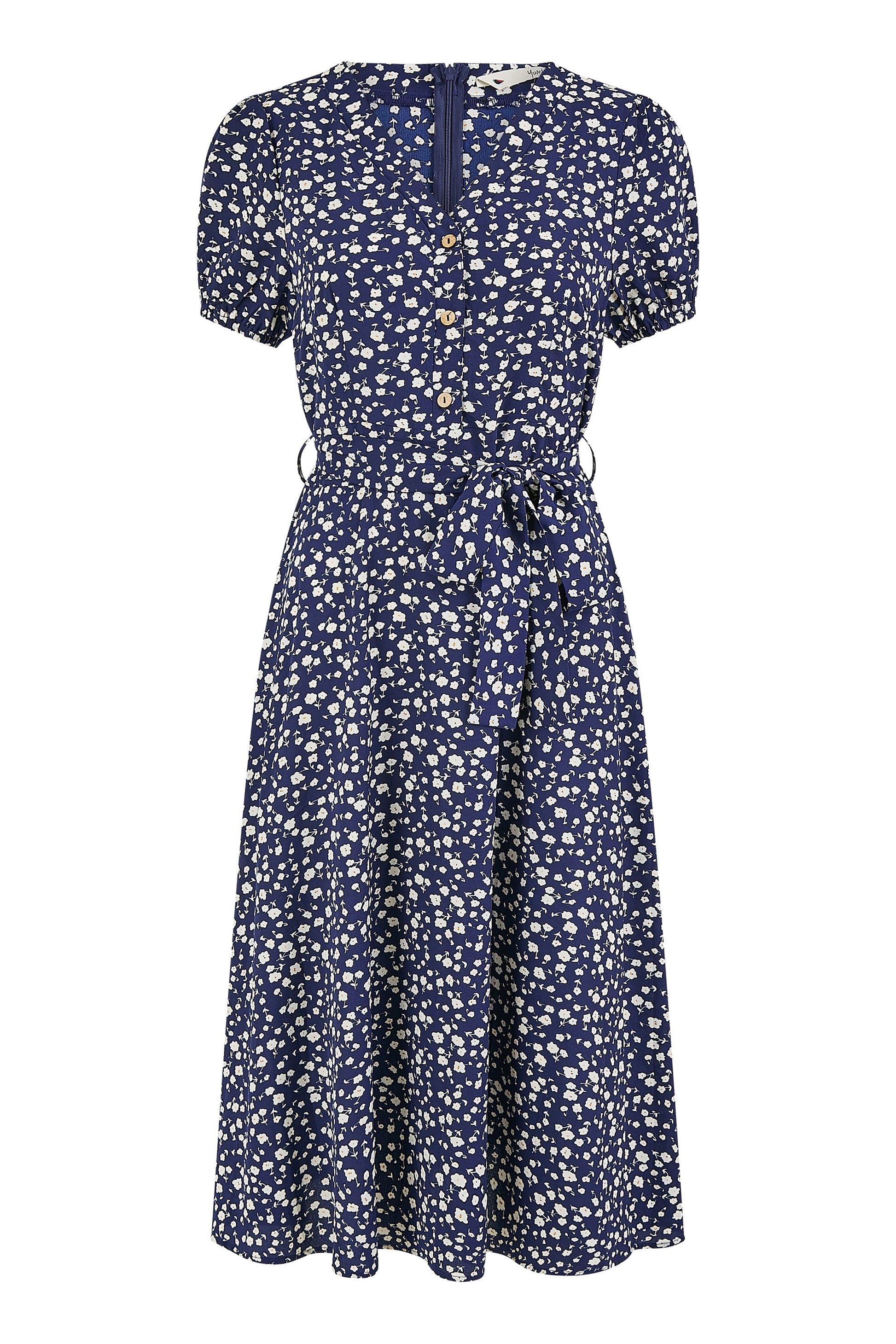 Yumi Navy Geo Print Retro Style Shirt Dress