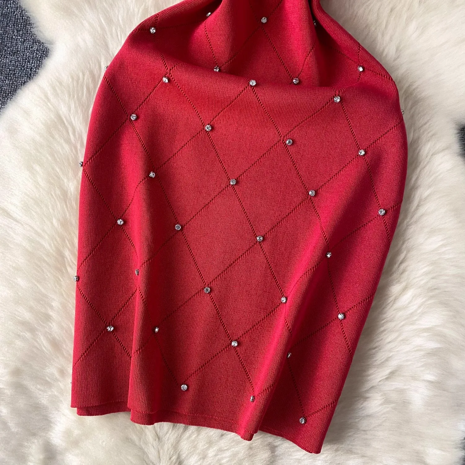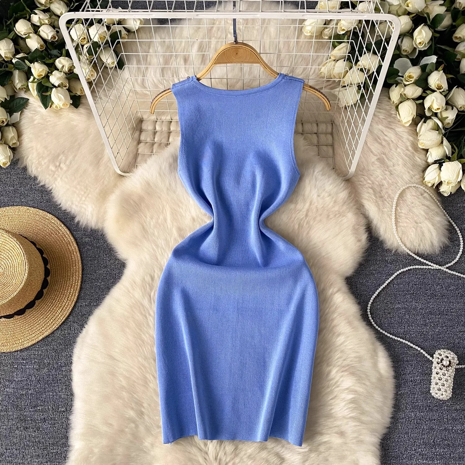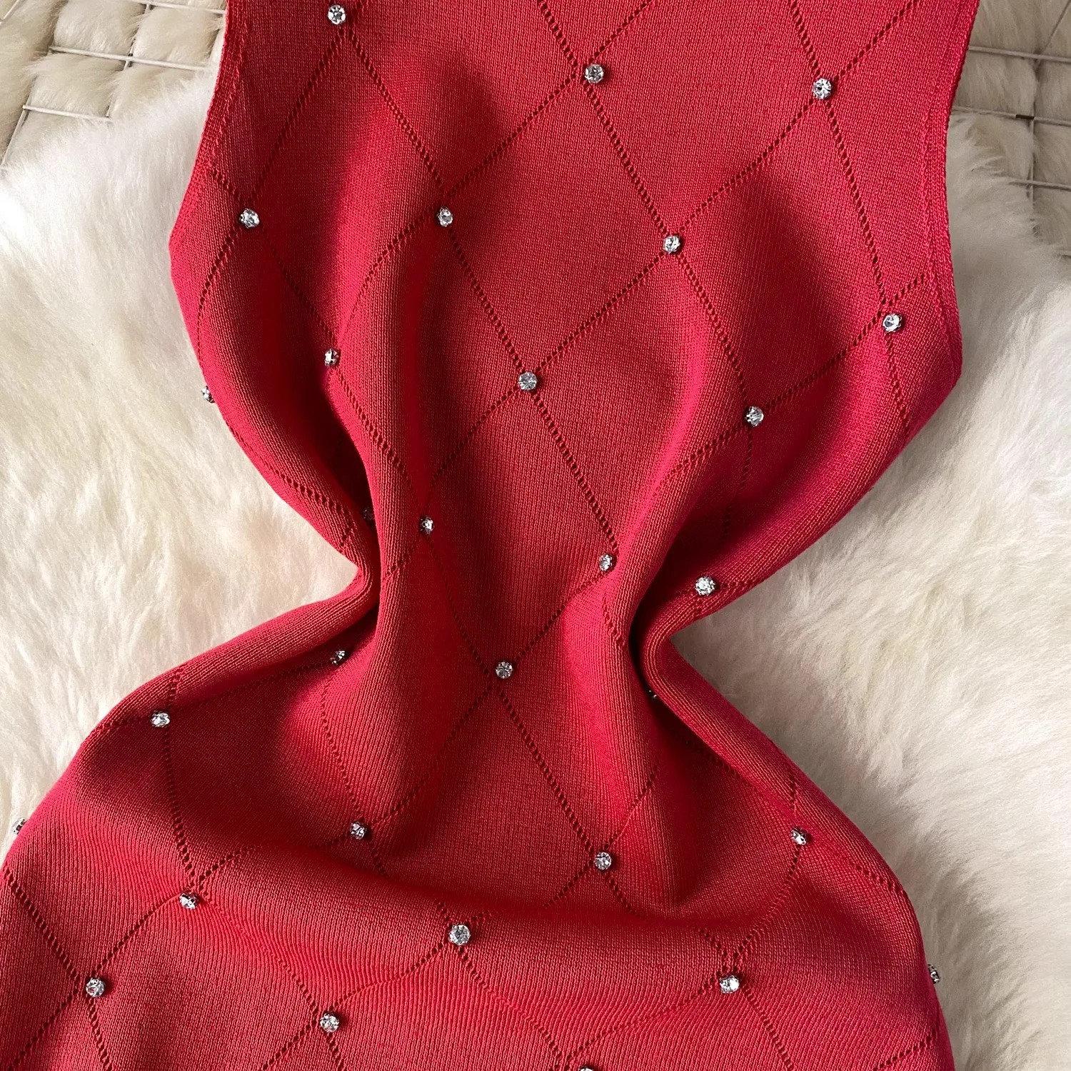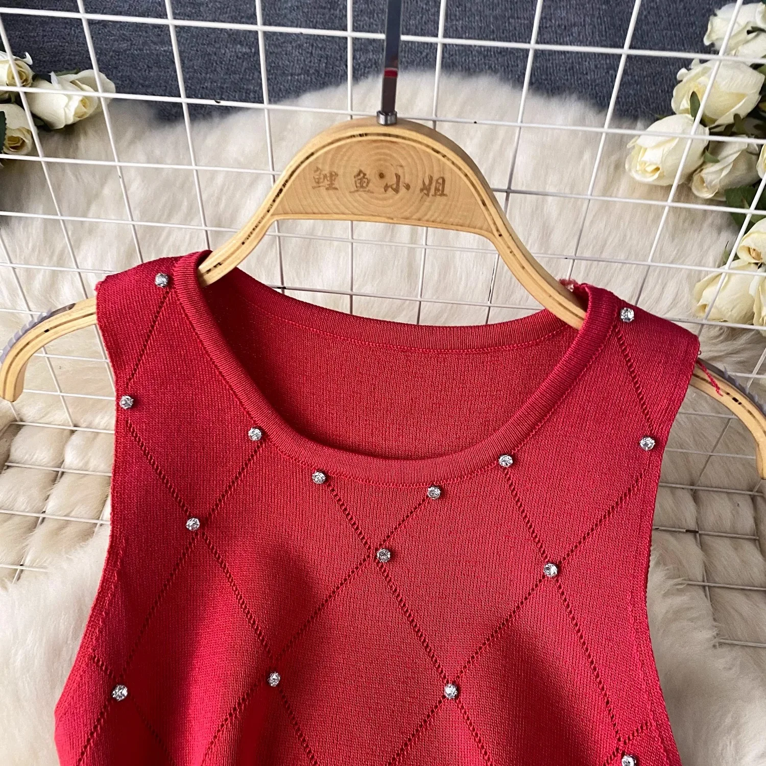 YuooMuoo Hotsweet Beading Knitted Mini Dress Women Sleeveless Slim Bodycon Summer Dress Streetwear Lady Outfits Tank Dress